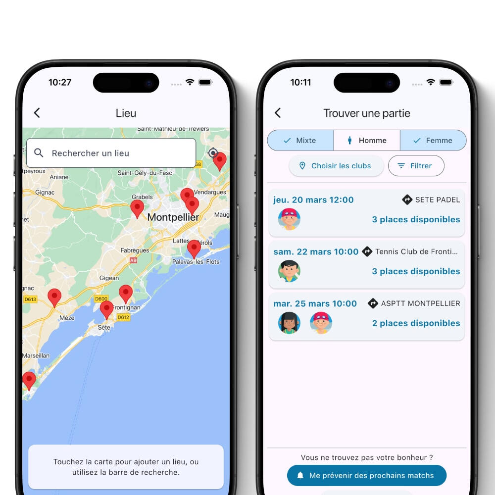 Avec iPadel, jouez plus souvent et trouvez des joueurs de votre niveau près de chez vous. Que vous soyez débutant ou confirmé, entre amis ou avec de nouveaux partenaires, l’app s’adapte à vos envies.